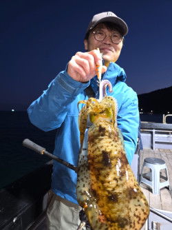 10월25일(토요일)팁런 무늬오징어 조황입니다. 17분모시고 다녀왔으며 시작 부터선속이 1.5노트 가량 흐르는 상황에 채비가 막 날아댕겼습니다. 탐색이 잘되니 활성도 역시도 좋왔습니다. 감자를 걸어도 거짓말 쬐끔 보태서 무우급 걸었을때 손맛이었을겁니다. 가는곳마다 배가 잘 밀려주어서 뜰채질 하느라 혼낫습니다. 밤늦게 뜸하여 20분 이동후 배는 크게 밀리지 않았지만 걸면 고구마 아님 무시급 평균 사이즈는 훌륭했습니다. 따박따박 지루하지않게 꾸준히 나왓으며 키로급도6마리 전체마리수 110수 입니다. 그리고 멀리서오신 한분 1300g (1290g조금식 흔들리다보니...)축하드리며 규칙대로 3번 이상 승선 우선입니다.최대어 순